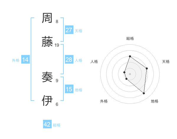 周藤 奏伊さんを姓名の画数から五運を鑑定