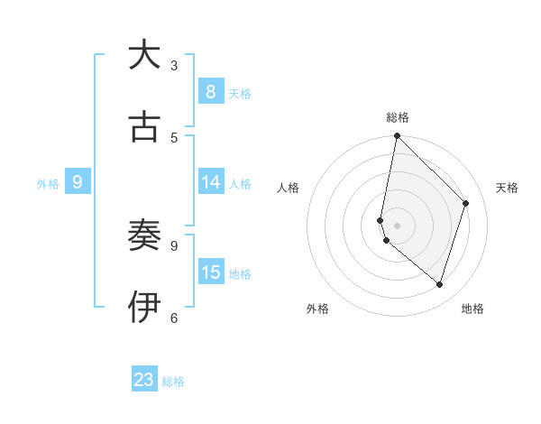 大古 奏伊さんを姓名の画数から五運を鑑定