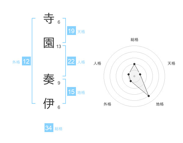 寺園 奏伊さんの総格は34画の2点!