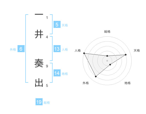 一井 奏出さんを姓名の画数から五運を鑑定