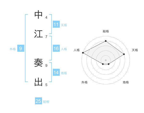 中江 奏出さんの総格は25画の4点!