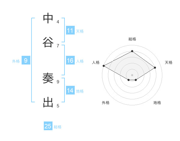 中谷 奏出さんを姓名の画数から五運を鑑定