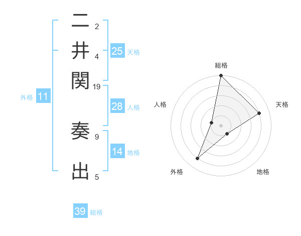 二井関 奏出さんの総格は39画の5点!