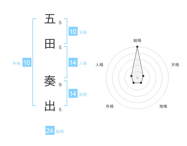 五田 奏出さんの総格は24画の5点!