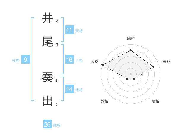 井尾 奏出さんを姓名の画数から五運を鑑定