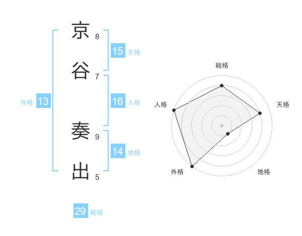 京谷 奏出さんを姓名の画数から五運を鑑定