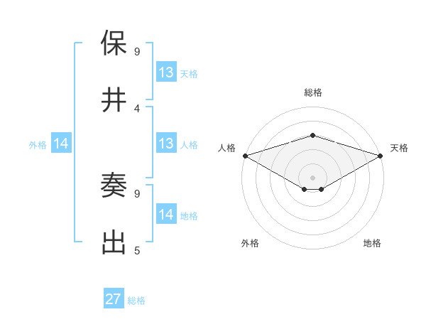 保井 奏出さんの天格は13画の5点!
