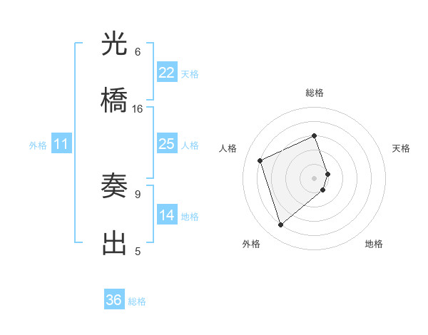 光橋 奏出さんを姓名の画数から五運を鑑定