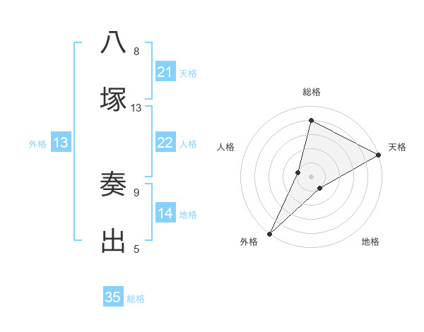 八塚 奏出さんの外格は13画の5点!