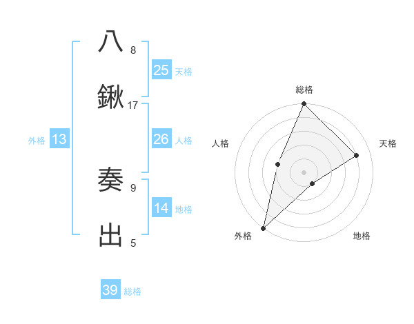 八鍬 奏出さんの外格は13画の5点!