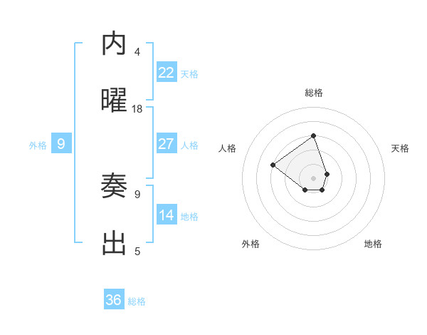 内曜 奏出さんの総格は36画の3点!