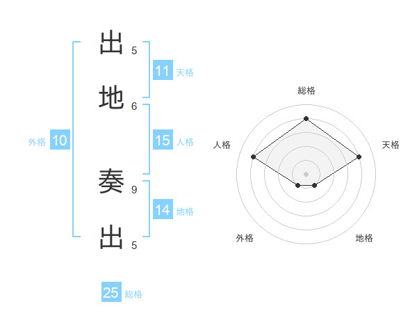 出地 奏出さんの総格は25画の4点!
