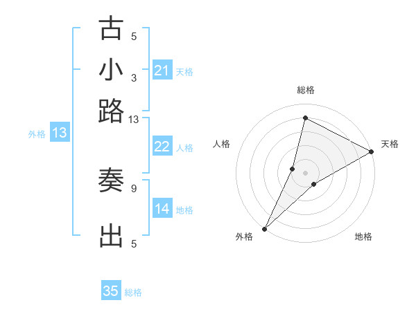古小路 奏出さんの外格は13画の5点!