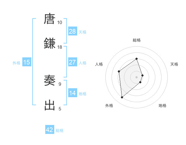 唐鎌 奏出さんの外格は15画の4点!