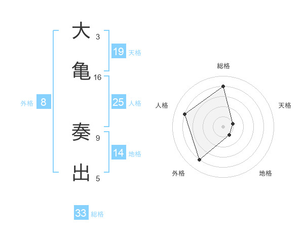 大亀 奏出さんを姓名の画数から五運を鑑定