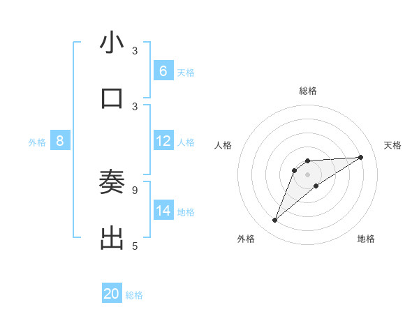 小口 奏出さんの総格は20画の1点!