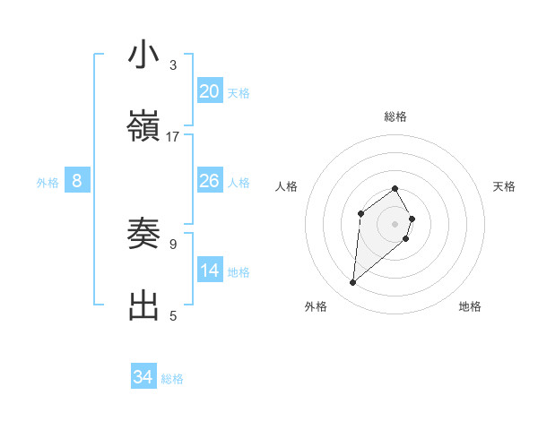 小嶺 奏出さんを姓名の画数から五運を鑑定