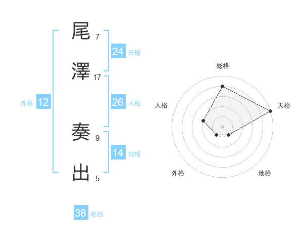 尾澤 奏出さんの総格は38画の4点!