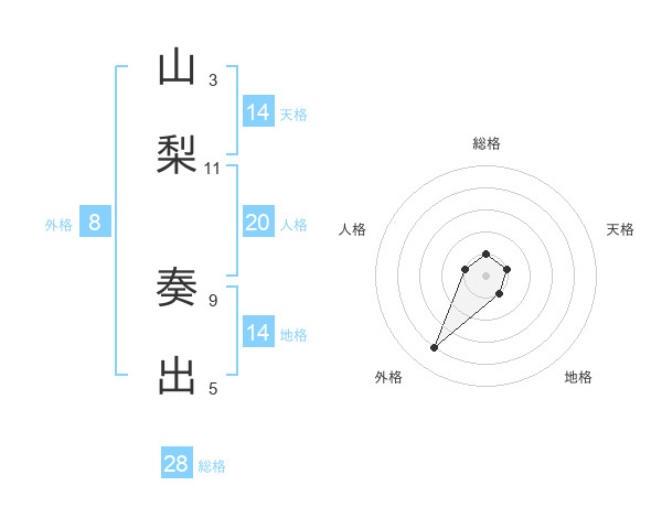 山梨 奏出さんの外格は8画の4点!