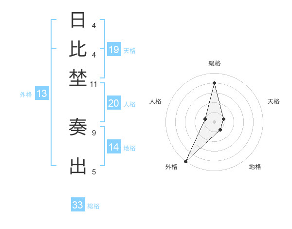 日比埜 奏出さんを姓名の画数から五運を鑑定
