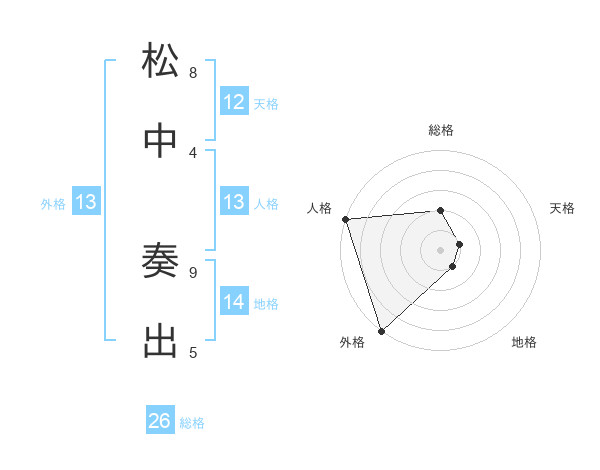 松中 奏出さんの外格は13画の5点!