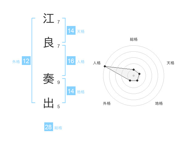 江良 奏出さんの総格は28画の1点!