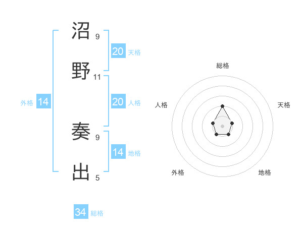 沼野 奏出さんを姓名の画数から五運を鑑定