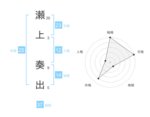 瀬上 奏出さんを姓名の画数から五運を鑑定