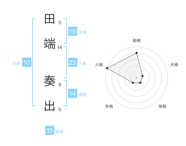田端 奏出さんを姓名の画数から五運を鑑定