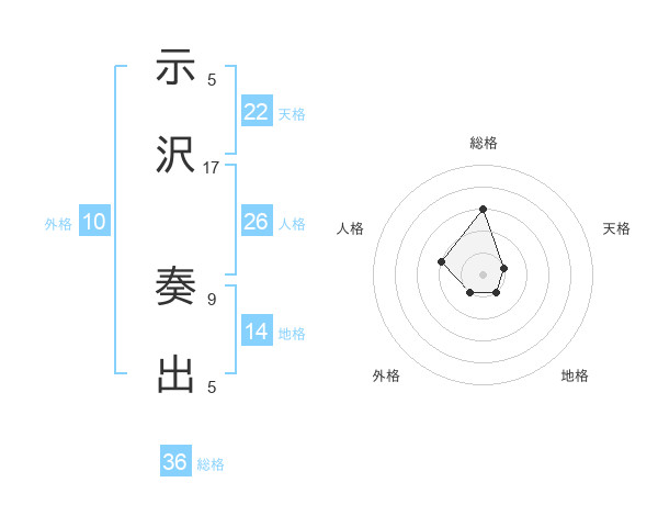 示沢 奏出さんの天格は22画の1点!