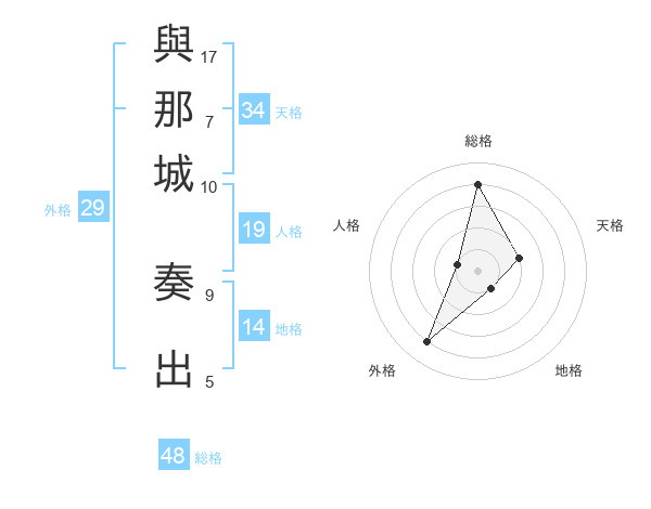 與那城 奏出さんの外格は29画の4点!