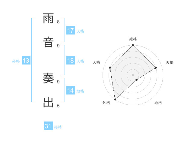 雨音 奏出さんを姓名の画数から五運を鑑定