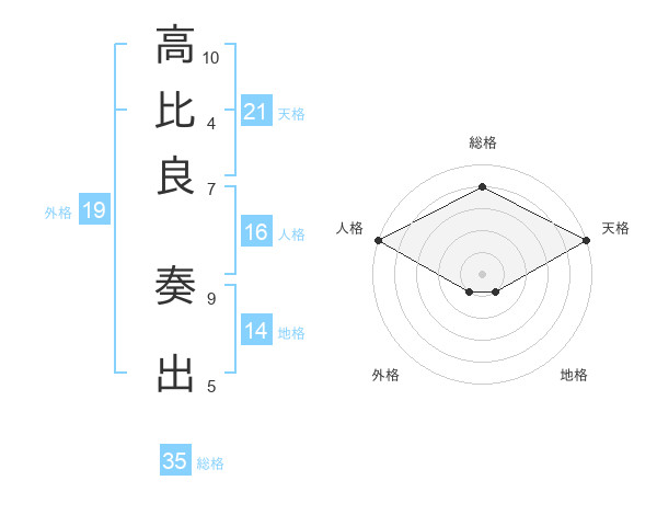 高比良 奏出さんを姓名の画数から五運を鑑定