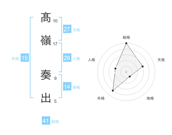 髙嶺 奏出さんの外格は15画の4点!
