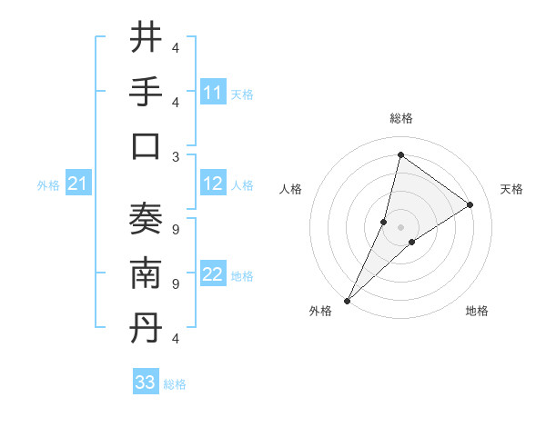 井手口 奏南丹さんを姓名の画数から五運を鑑定