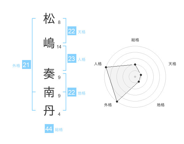 松嶋 奏南丹さんを姓名の画数から五運を鑑定