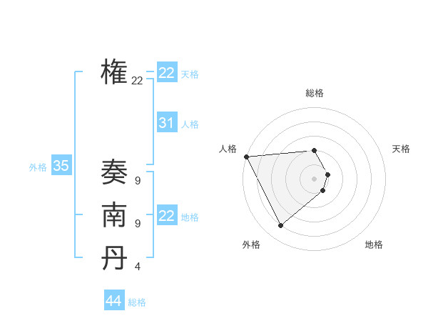 権 奏南丹さんを姓名の画数から五運を鑑定