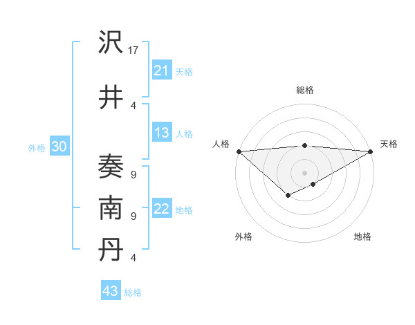 沢井 奏南丹さんを姓名の画数から五運を鑑定