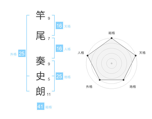 竿尾 奏史朗さんを姓名の画数から五運を鑑定
