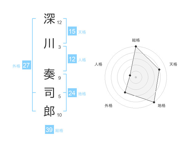 深川 奏司郎さんの天格は15画の4点!