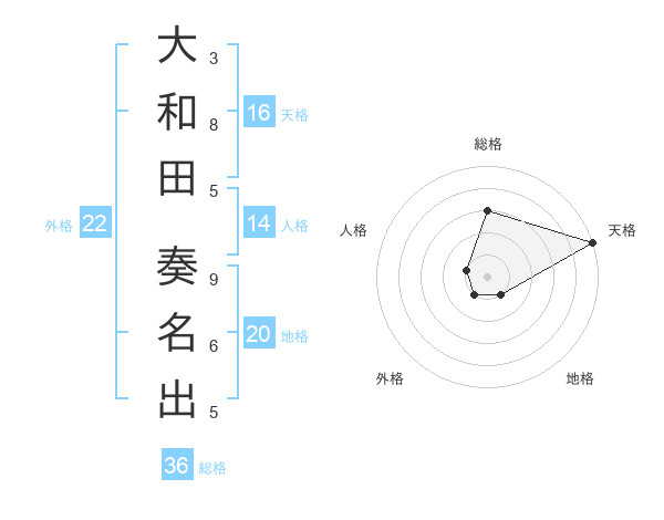大和田 奏名出さんを姓名の画数から五運を鑑定