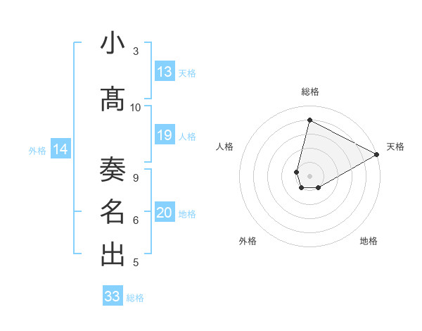 小髙 奏名出さんを姓名の画数から五運を鑑定