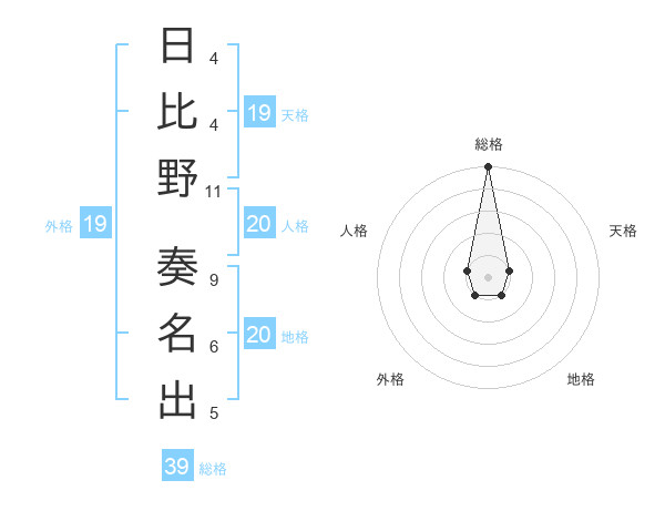 日比野 奏名出さんを姓名の画数から五運を鑑定
