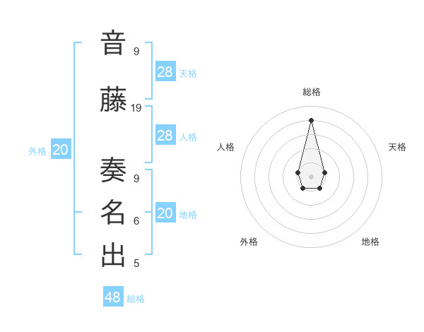 音藤 奏名出さんを姓名の画数から五運を鑑定