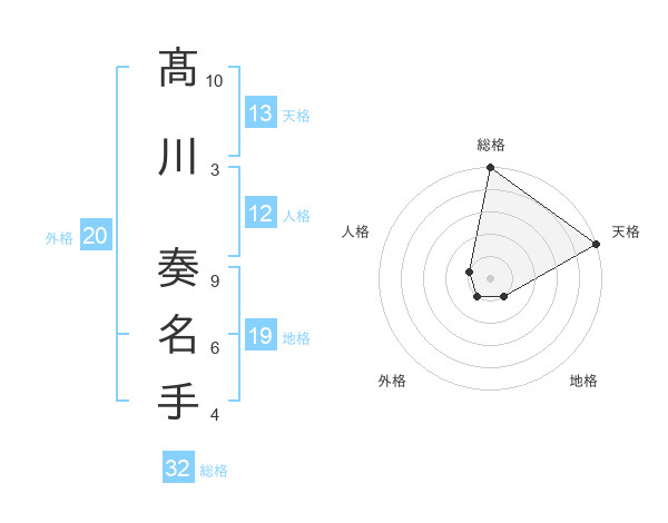 髙川 奏名手さんを姓名の画数から五運を鑑定