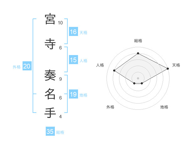 宮寺 奏名手さんの天格は16画の5点!