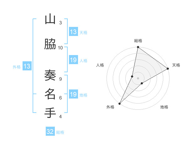 山脇 奏名手さんの外格は13画の5点!