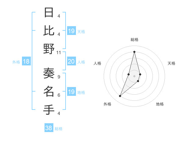 日比野 奏名手さんの総格は38画の4点!