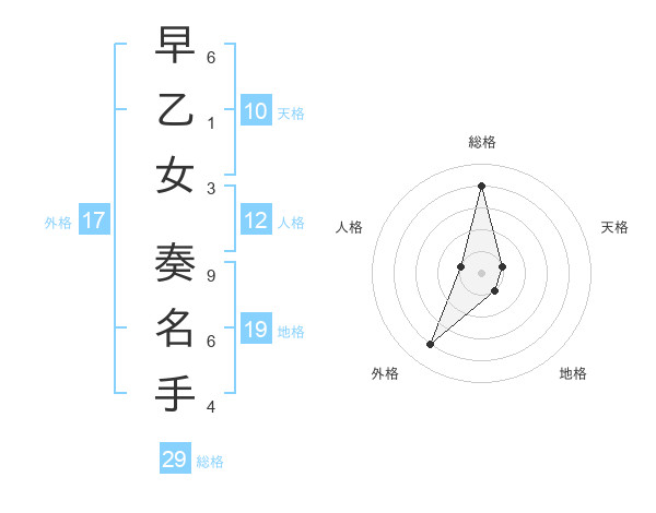 早乙女 奏名手さんを姓名の画数から五運を鑑定