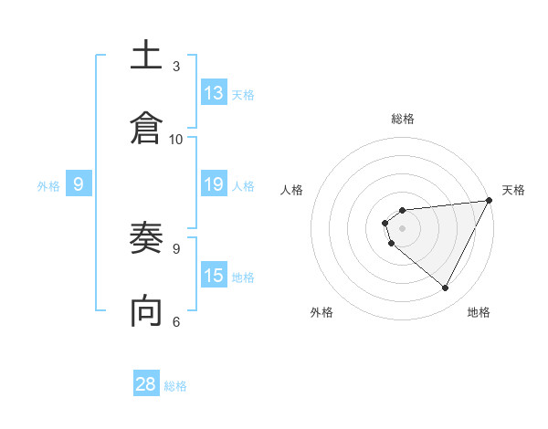 土倉 奏向さんの天格は13画の5点!